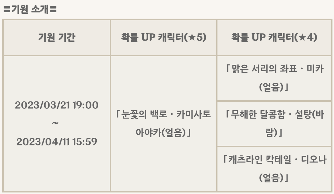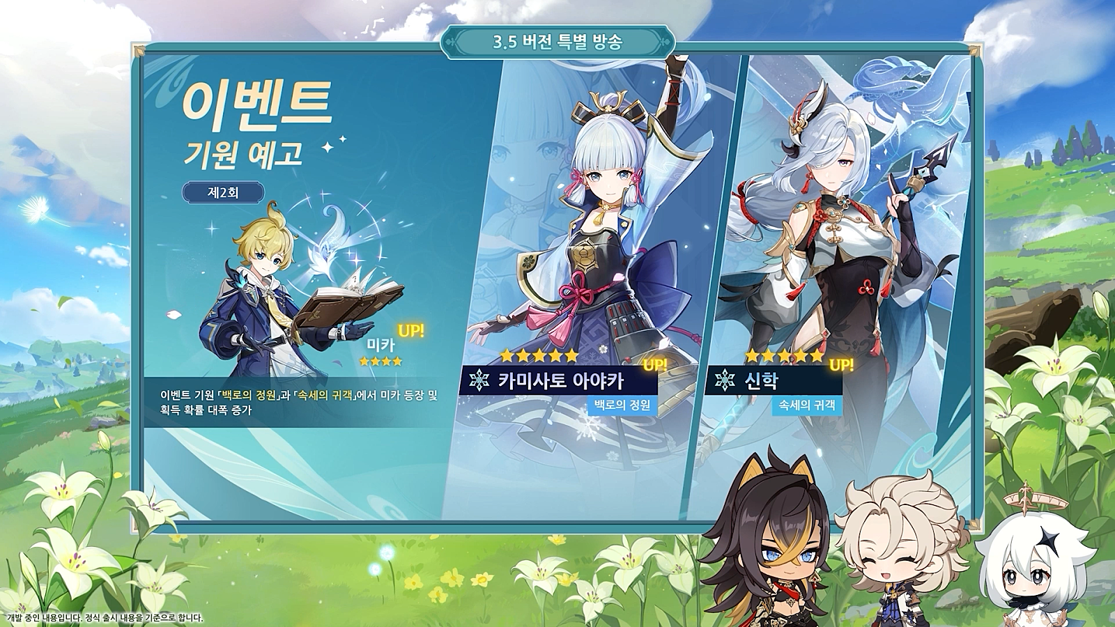 3.5 버전 후반픽업 아야카& 신학 캐릭터, 무기 픽업배너