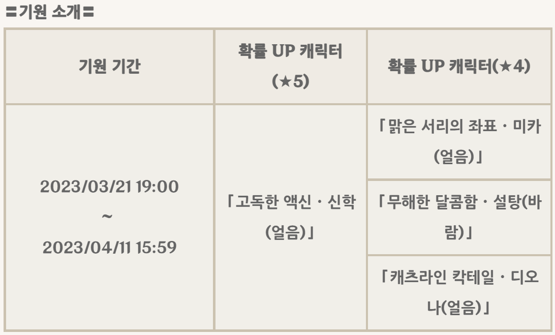 3.5 버전 후반 픽업 (데히야&사이노 다음 픽업 캐릭터)