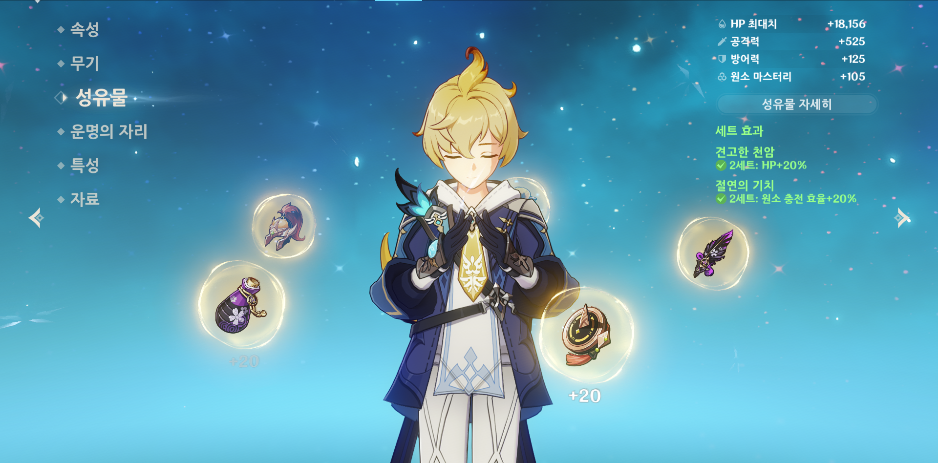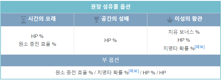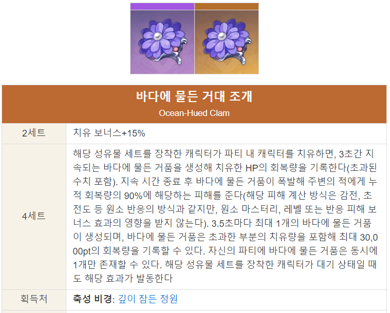 미카의 파티 지원을 최대 효율로 제공할 수 있는 성유물 세트.