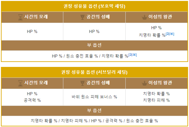 치명타 확률과 공격력을 동시에 잡을 수 있기 때문에 세팅을 맞추기 매우 편하다는 게 큰 장점.