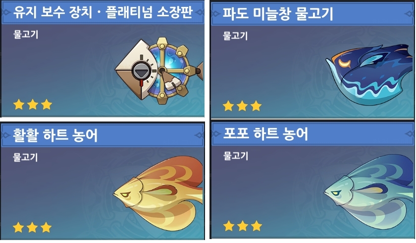 2023.08.23 - [원신] - [원신] 폰타인 낚시 무기 재료/미끼 제조법/협회위치/낚시포인트(잿빛의 강 뱃사공) 1탄