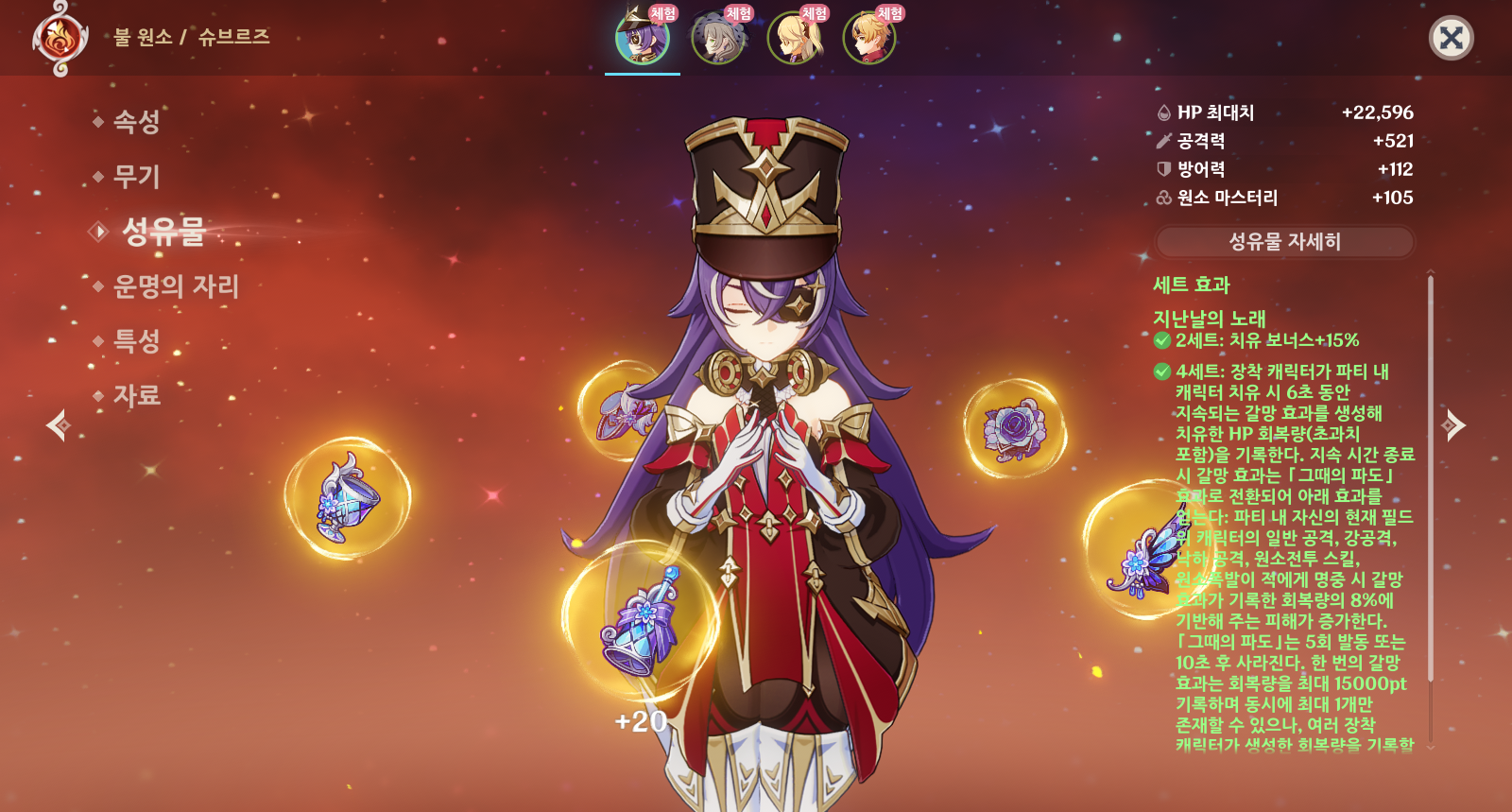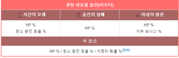 슈브르즈를 서포터로 운용할 경우 추천되는 성유물