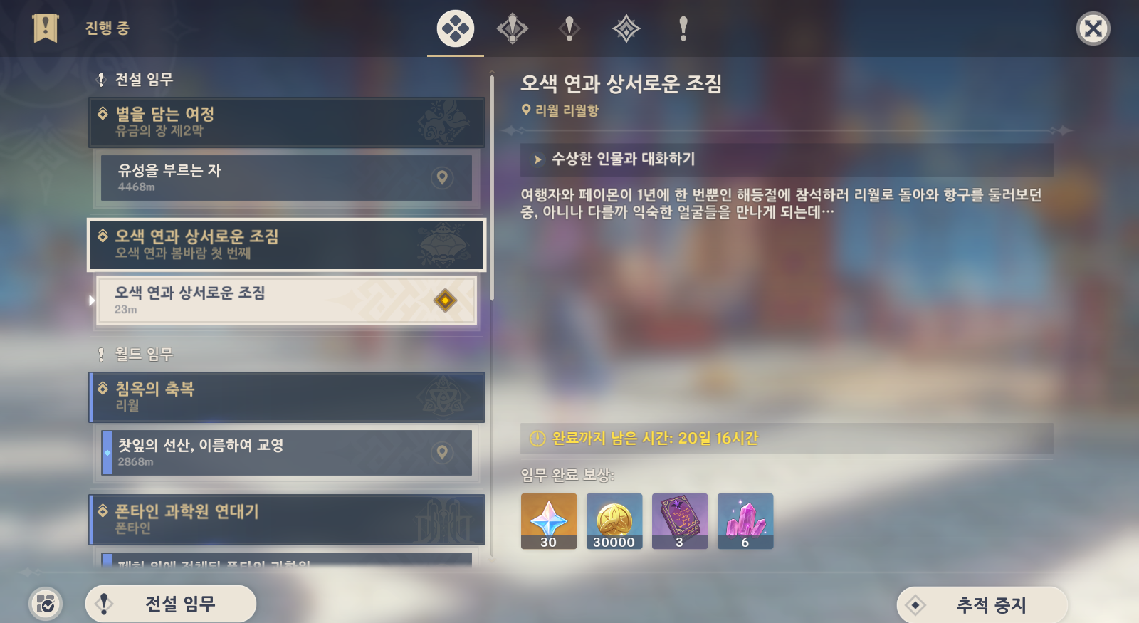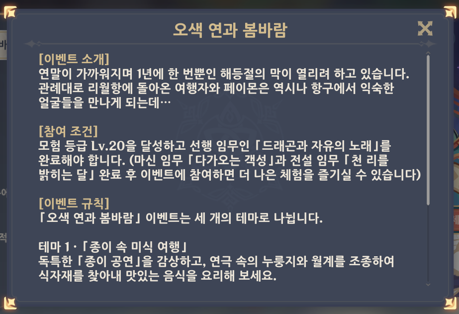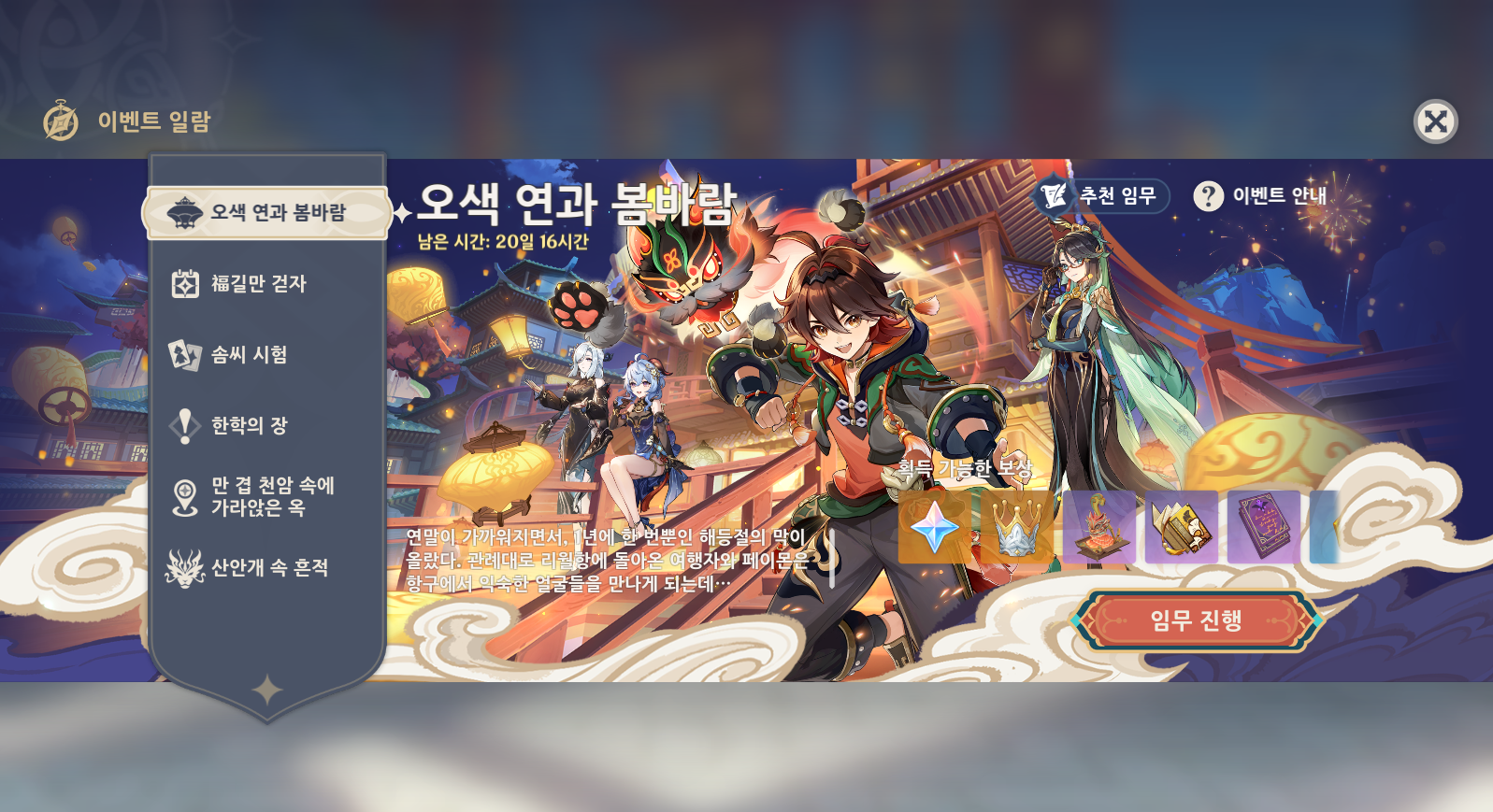 원신 해등절이벤트 '오색 연과 봄바람' 참여조건, 선행임무