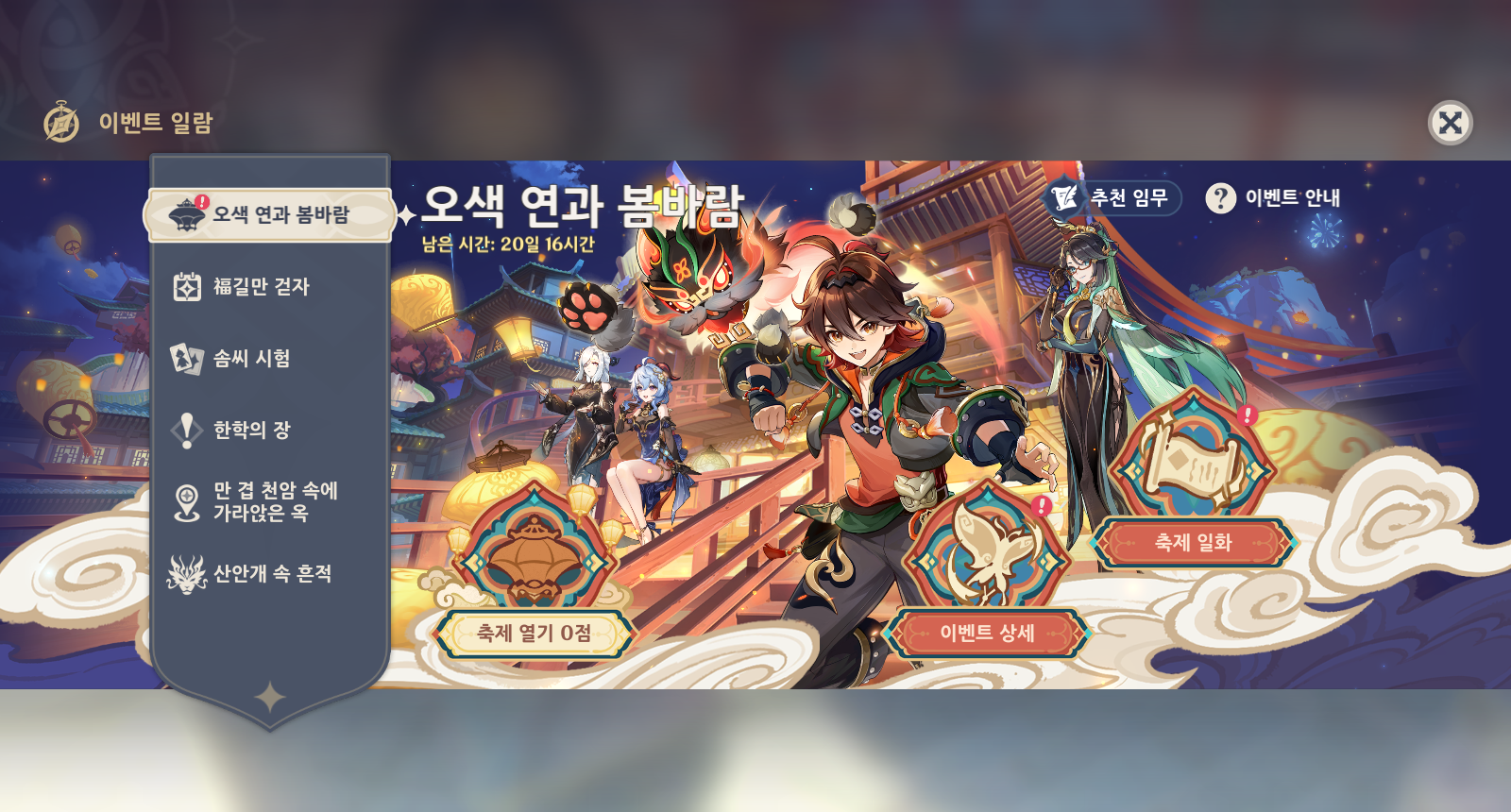원신 해등절이벤트 '오색 연과 봄바람' 이벤트 상세내용