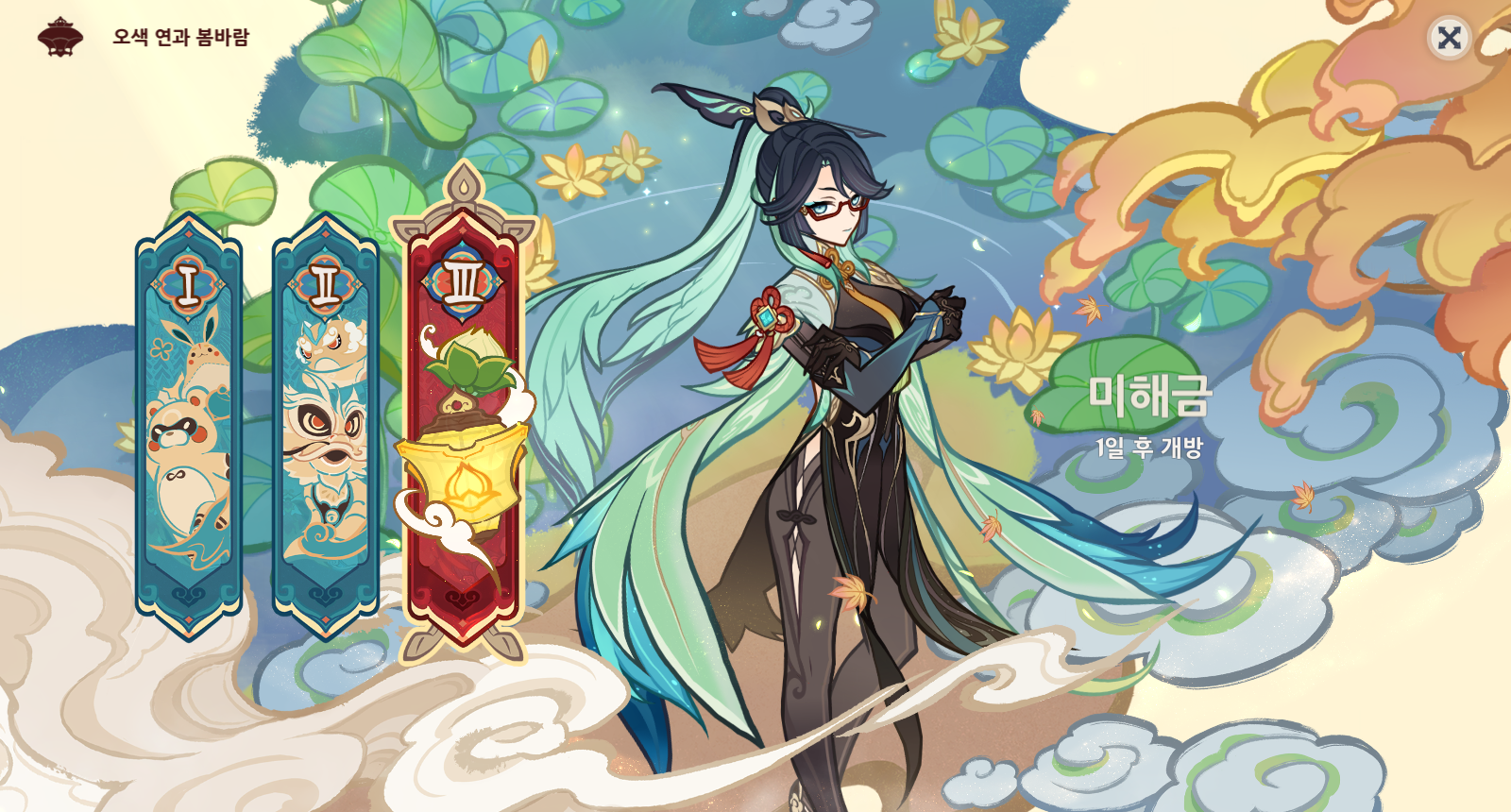 원신 해등절이벤트 '오색 연과 봄바람' 보상, 캐릭터선택권, 행추 코스튬, 원석