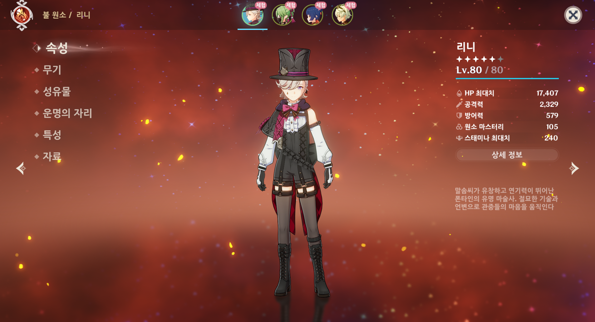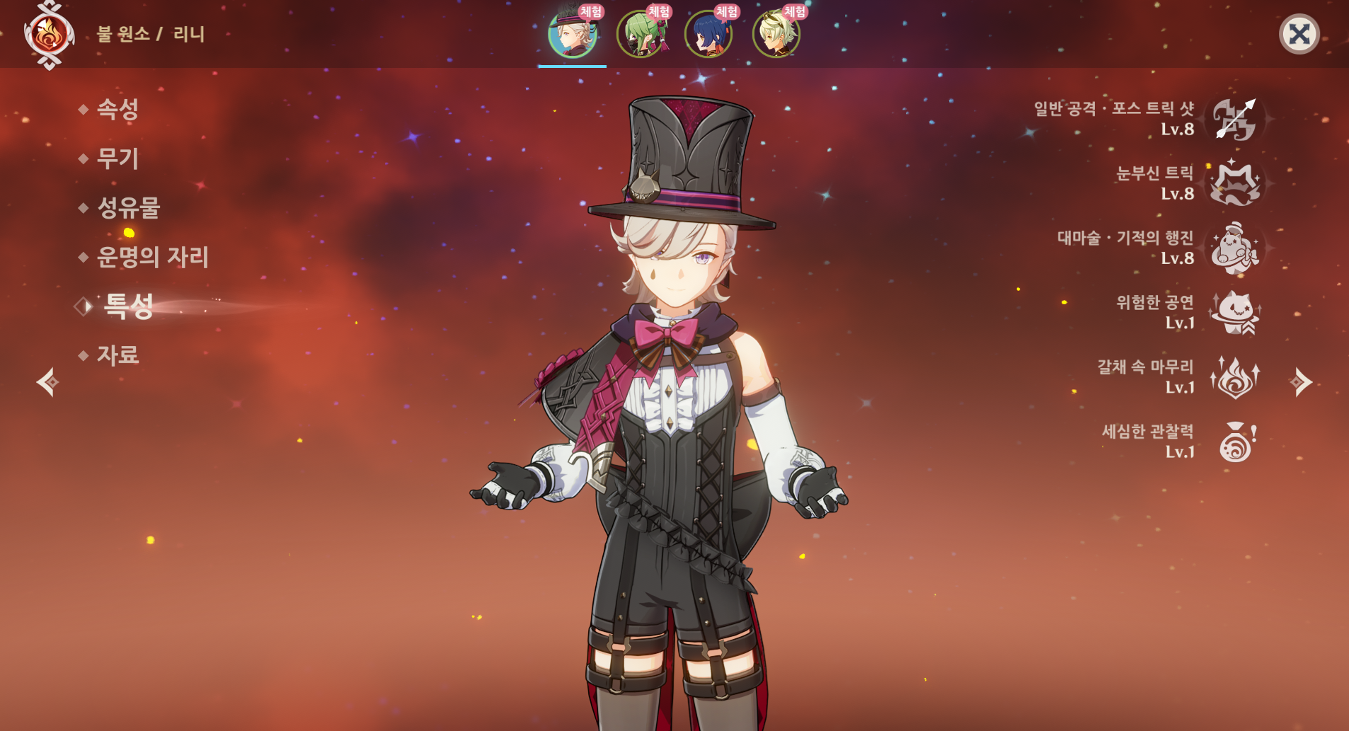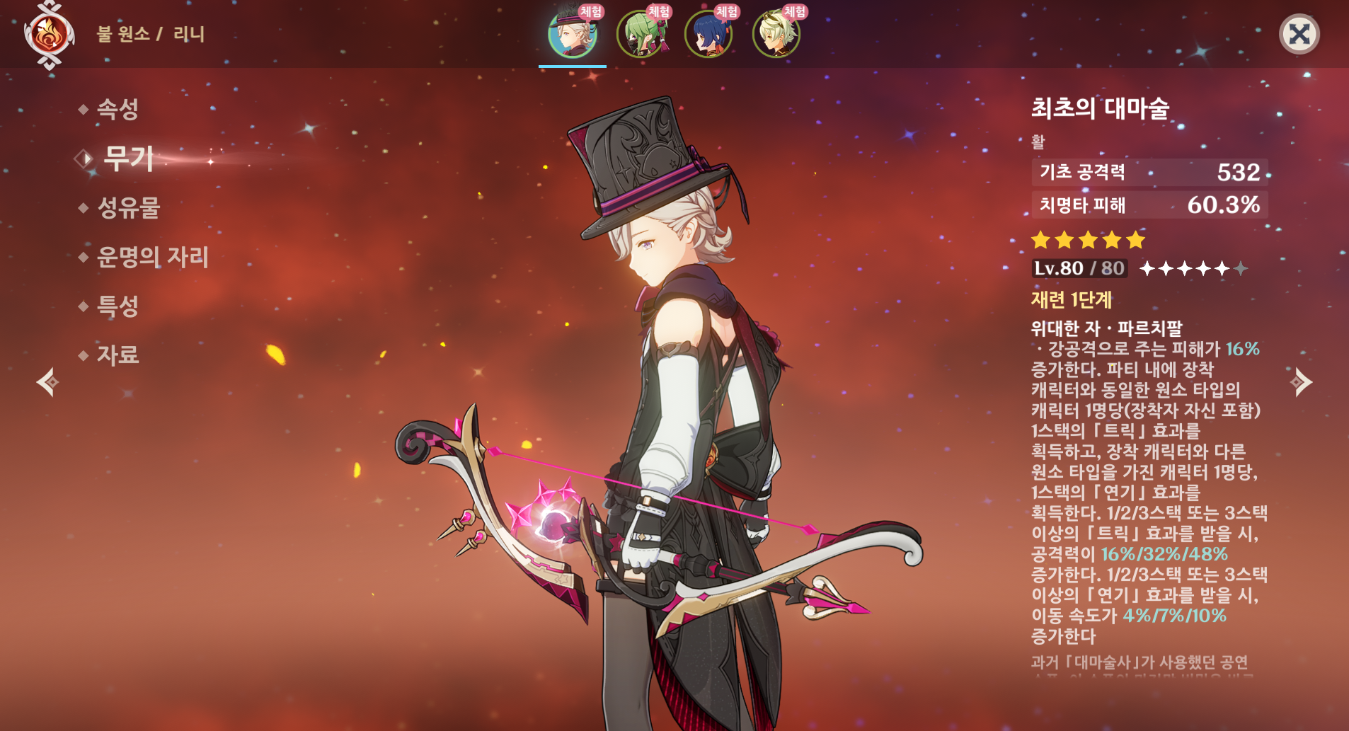 원신 리니 성유물 세팅 돌파재료,무기,파티조합,스킬순서 육성법