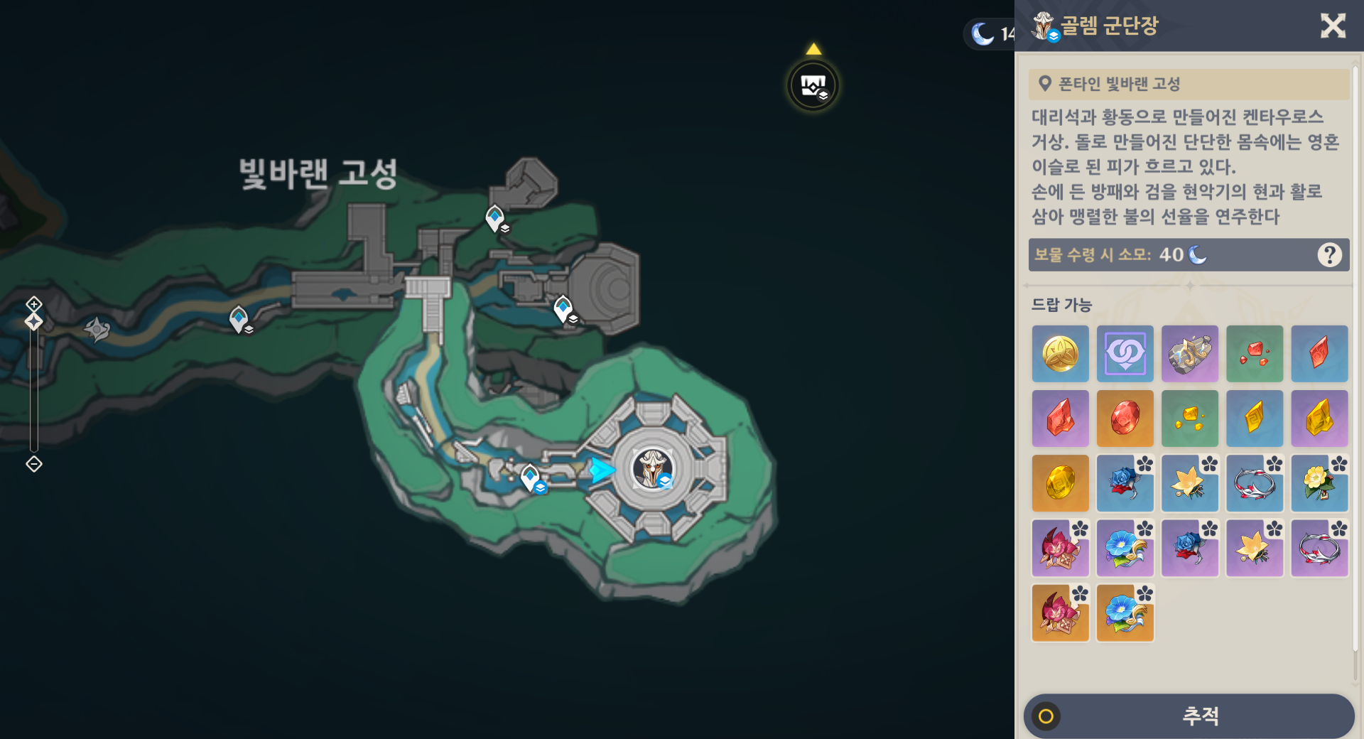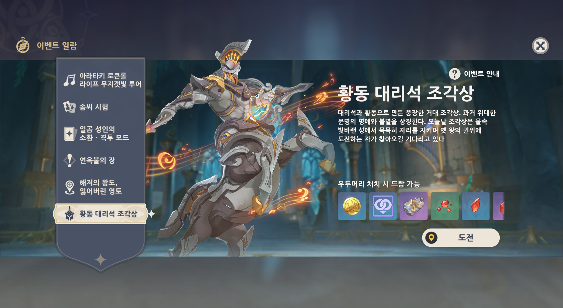 원신 아를레키노 돌파재료 골렘 군단장 가는법 위치(금빛 선율의 단편,황동 대리석 조각상)