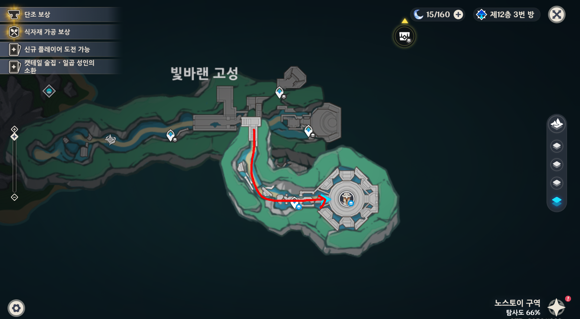 위 사진에 동그라미 친 워프로 이동하여 화살표 방향으로 이동합니다. 화살표 방향으로 이동하면 아래층으로 갈수 있습니다.