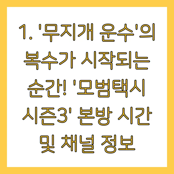 1. '무지개 운수'의 복수가 시작되는 순간! '모범택시 시즌3' 본방 시간 및 채널 정보